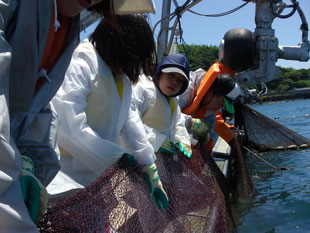 鎮西町串浦漁港から漁船で5分の海岸に設置されている定置網には、春にはマダイやヤリイカ、夏にはマアジやカワハギ、秋にはブリやアオリイカなどの魚介類が入ります。ぜひ、ダイナミックな定置網漁業を体験してみてください。獲れた魚は、全て持ち帰りOK!1日1回限定で定員9名。