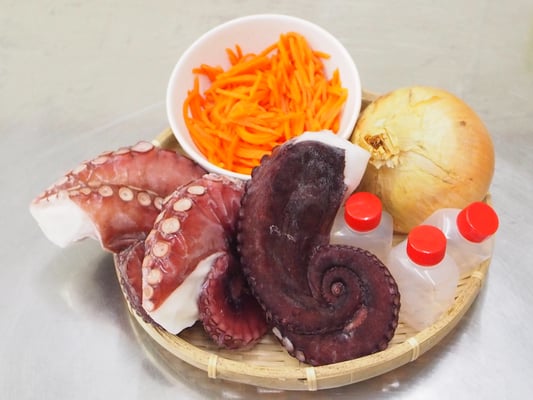 4 キット内容 タコ飯、タコ唐揚げ、タコカルパッチョの4名分のメニューキット、作り方説明書