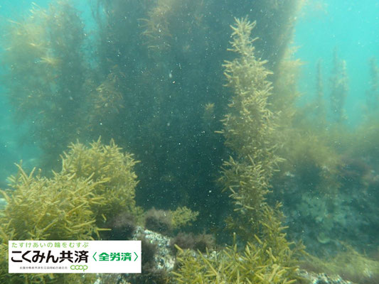 令和6年7月の調査で、ホンダワラ、ウミトラノオ、カジメ等が0.64haの面積で繁茂し(被度23%)、昨年度(0.3ha)により広い範囲で確認されました。令和7年度は母藻筏を増やす等拡大していきます。