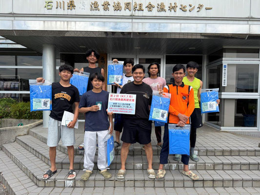 石川県は昔から日本海有数の漁業基地として栄え、日本の食糧基地としての役割を担ってきた地域といえます。同じ海で生きてきたNPO法人 浜-街交流ネット唐津の会員漁業者は、石川県漁業の一日も早い再建を願い、ふるさと納税を活用したクラウドファンディングで全国311名の方々からいただいた寄附金で、石川県漁業協同組合が決定した今般の震災で甚大な被害を受けた地区で漁業の技能習得を目指すとともに石川県漁業の大きな力となっている特定技能外国人ならびに技能実習生103名に2回目の漁業資材(漁業用合羽と長靴 103万円分)を寄贈させていただきました。